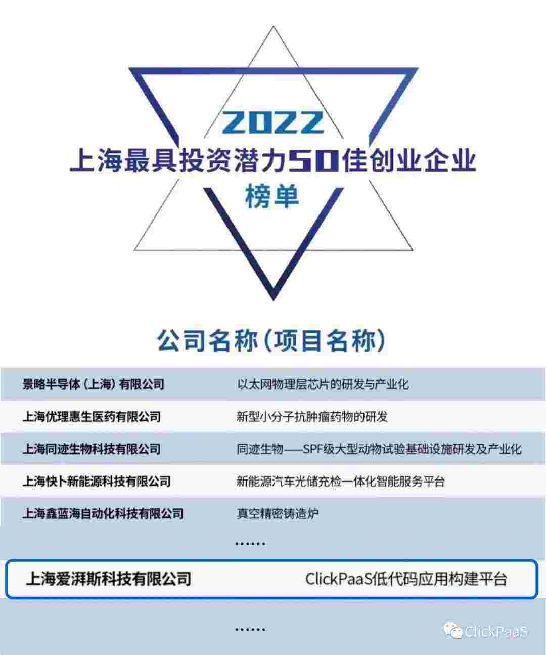 美团钱包商家版 作为国内低代码PaaS平台的领军企业,,与120家创企入围角逐。。。。期间接受了来自德同资本、、、领中资本等知名投资机构的10位投资人组成专家评委团的背靠背盲选。。并最终入围“2022上海最具投资潜力50佳创业企业”榜单,,被列入“上海市重点培育创业企业库”。。