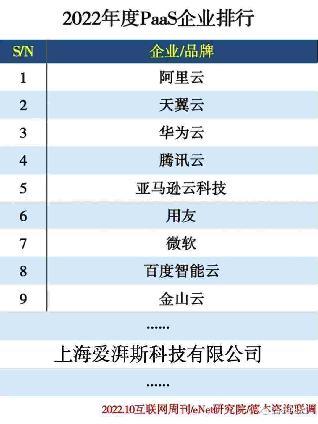 近日,,,Internet Deep发布了由互联网周刊、、、eNet研究院、、、、德本咨询联合调查的”2022年度PaaS企业排行“榜单,,,上海爱湃斯科技有限公司(以下简称美团钱包商家版),,,凭借强大的建模能力,,,为各行业头部客户解决复杂业务需求的实践经验以及强大的集成扩展能力,,,,入选2022年度PaaS企业排行TOP 50。。。